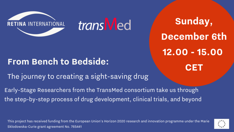 On December 6th, 2020 transMed's Early Stage Researchers explained - step by step - the 'journey to creating a sight-saving drug'. This event was prepared and conducted by all thirteen Early Stage Researchers in collaboration with Retina International. The primary audience were patients affected by a retinal degeneration.